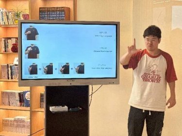 9月4日,我们首次将公益融入工会活动,聚焦视听障碍群体,开启一场别开生面的“黑暗对话”。作为熊爪咖啡的合作伙伴,MustardTek(芥梧科技)创始人Minki Chang 与我们分享了“包容性设计”的理念——如何通过科技和设计的力量,打破残疾障碍与非残疾障碍群体之间的隔阂。在Minki的聋人助理引导下,同事们第一次接触手语,学会用手语自我介绍和26个字母,也第一次意识到,这无声的语言也跨越国界,拥有自己的“方言”。